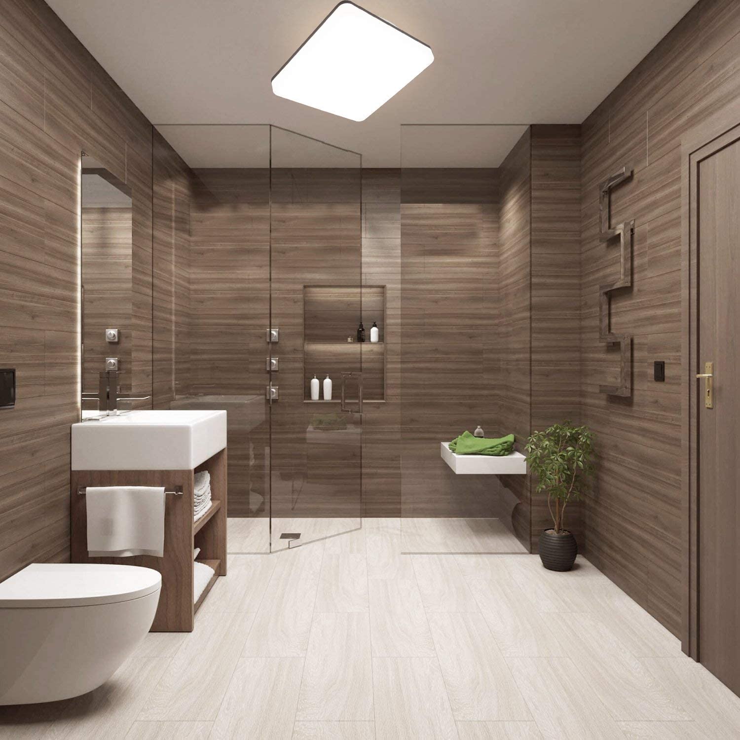 Sıçrayan suya karşı koruma sağlamak için sızdırmaz tasarım, IP54 banyo bölgeleri 1, 2 ve 3 için derecelendirilmiştir, ayrıca en-suite, mutfak, yardımcı odası, dış sundurma,garaj, koridor vb. için uygundur.