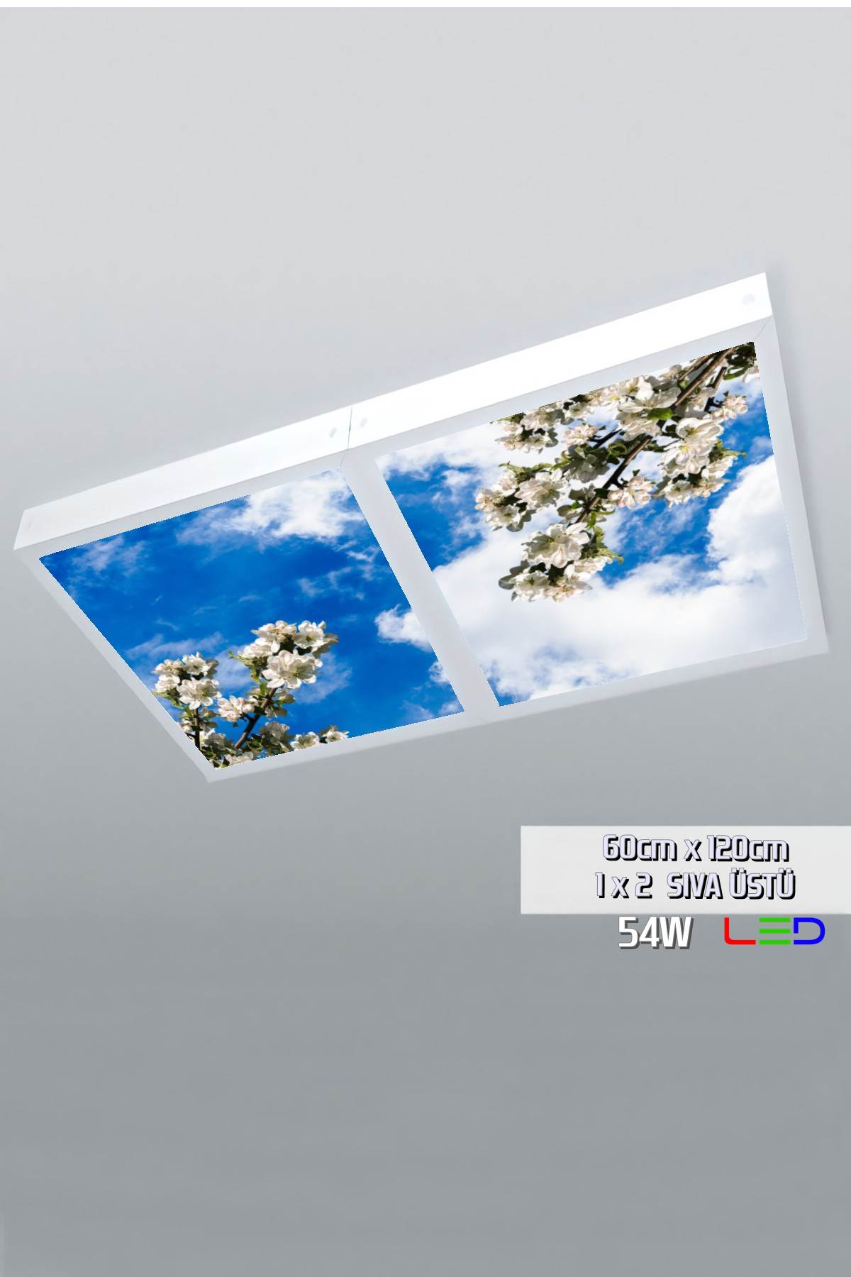 Gökyüzü Panel 1×2-ikili-60cmx120cm-tavana Yapışık Led-54watt x 2-sıva Üstü-kolay Montaj-tavan avize