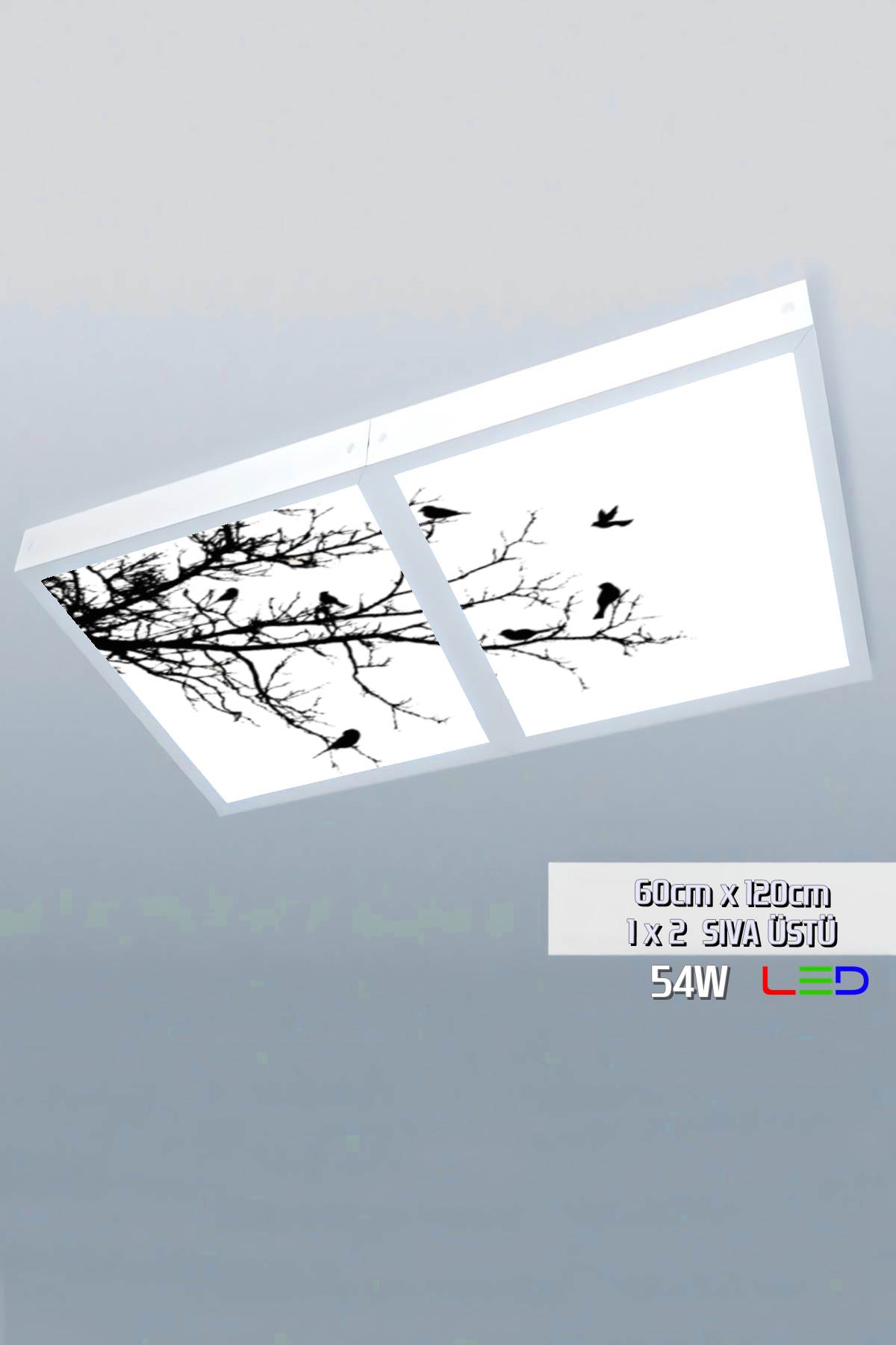 Gökyüzü Panel 1×2-ikili-60cmx120cm-tavana Yapışık Led-54watt x 2-sıva Üstü-kolay Montaj-tavan avize