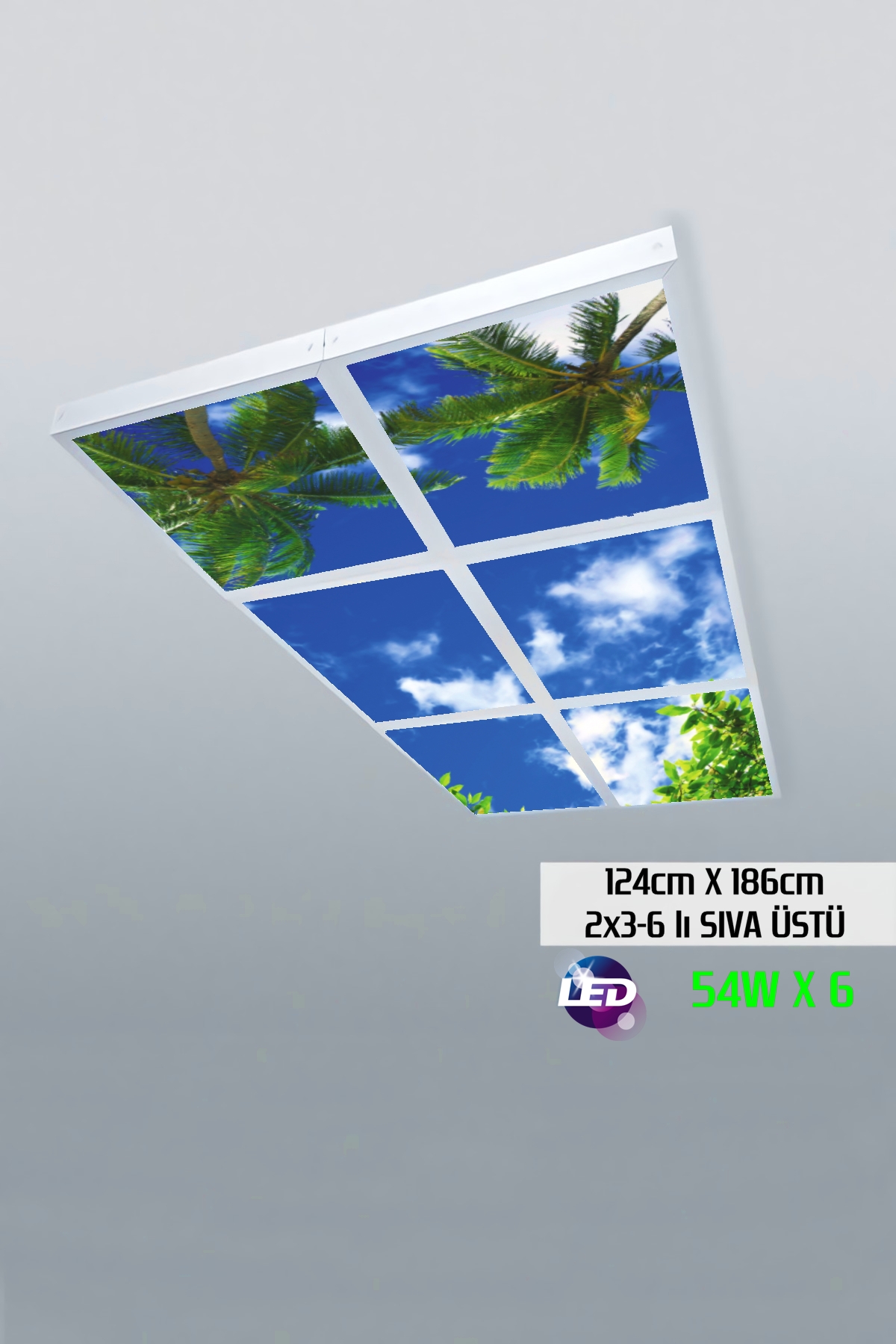 Gökyüzü Panel 2×3-altılı-124cmx186cm-tavana Yapışık Led-54watt x 6-sıva Üstü-kolay Montaj-tavan avize