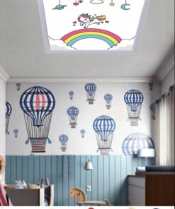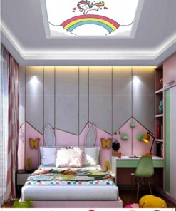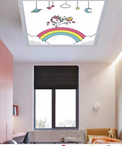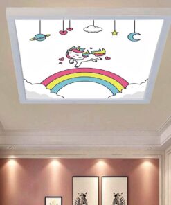Gökkuşağı Unicorn 60×60 Çocuk odası avize modelleri, 54wat led, tavana model avize,çocuklar için gökkuşağı unicorn desenli kare avize
