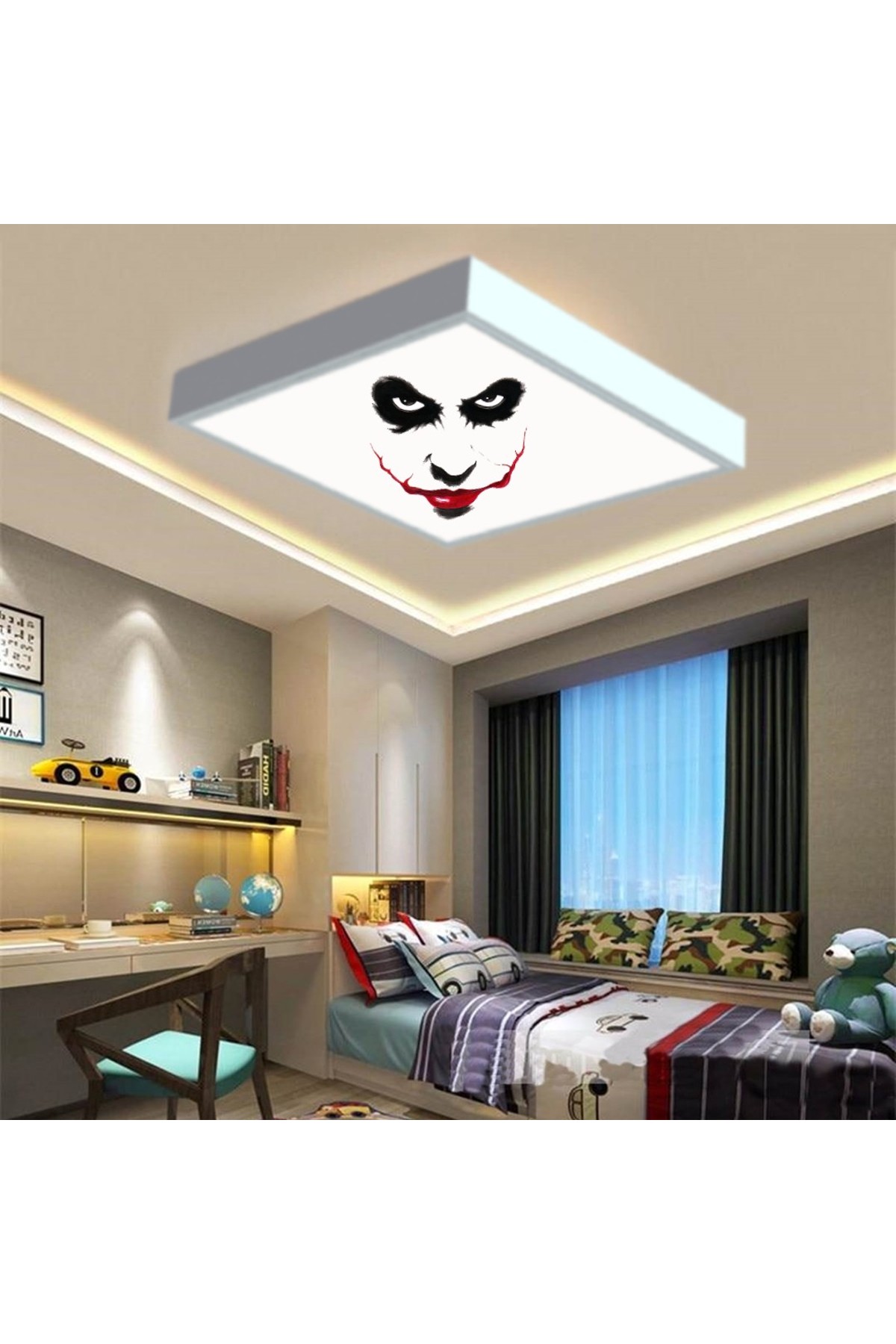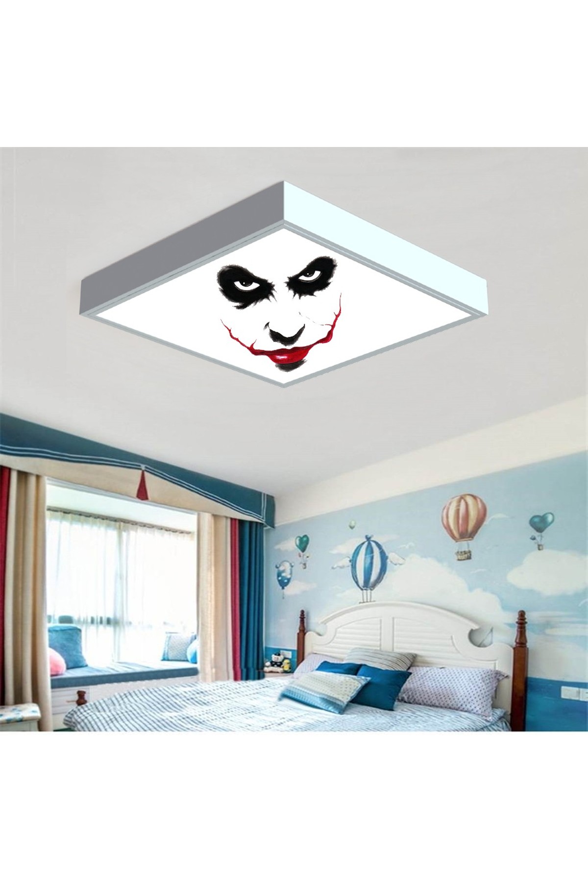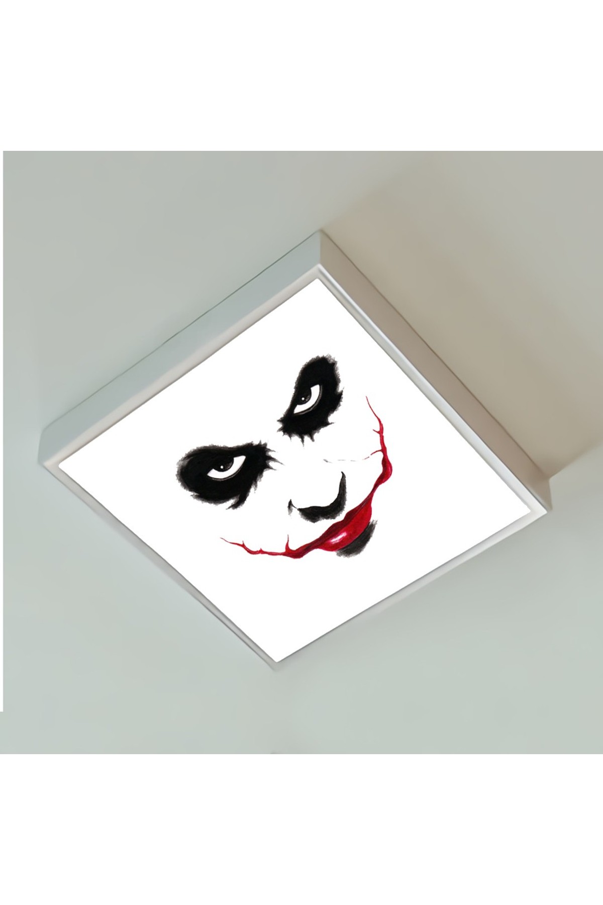 Joker Face 60×60 Çocuk odası avize modelleri, baskılı çocuklar için kare avize, 54wat led tavana model
