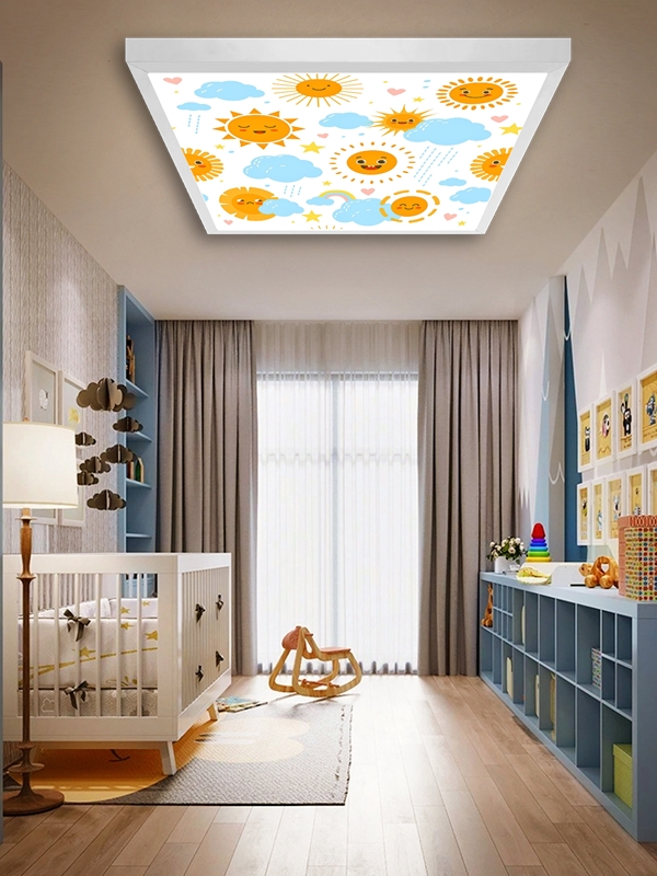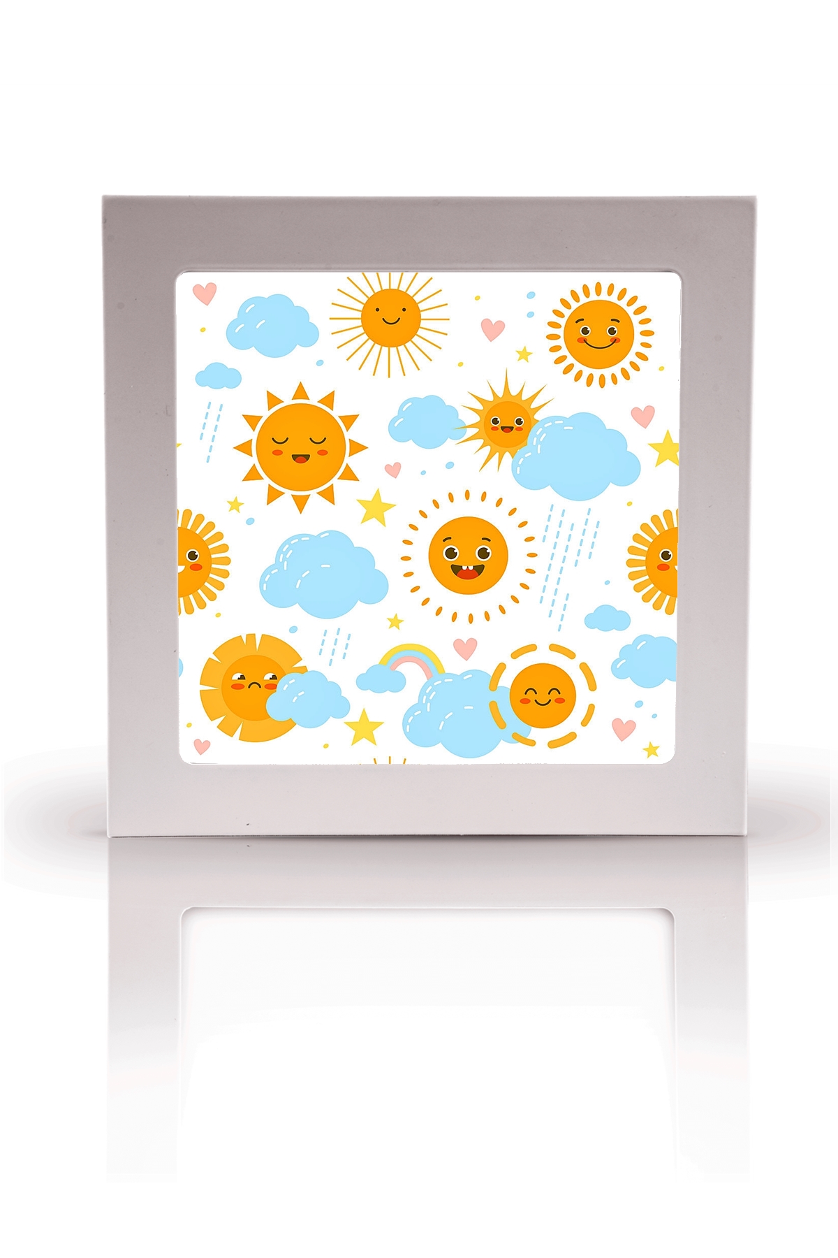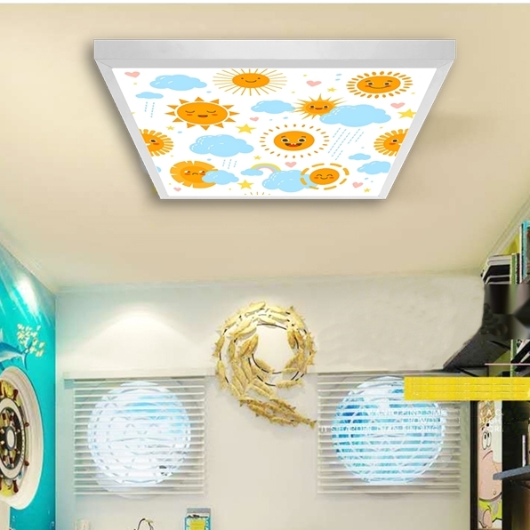 Mutlu Güneş Çocuk odası avize modelleri, 60×60 baskılı kare avize, 54wat led tavana model
