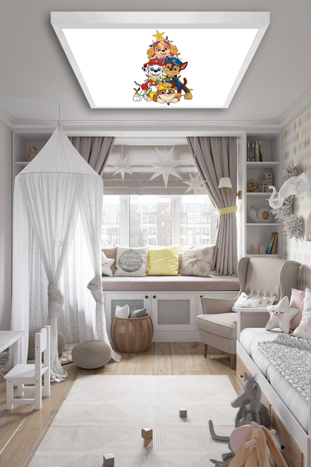 Sevimli Köpekler, Bebek Odası Avize-30cmx30cm Kare-24w-led-Cute Dogs bebek odası avize-