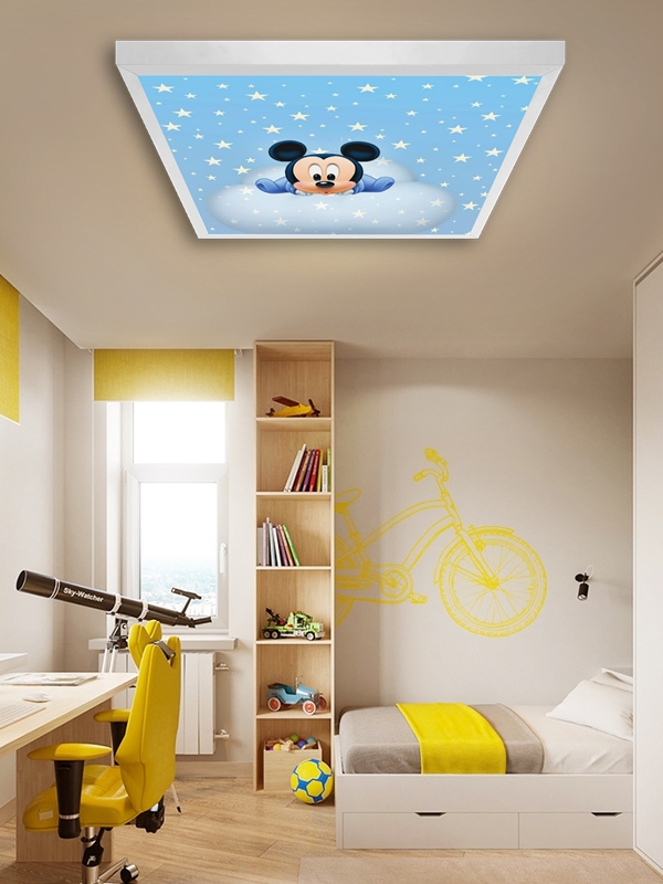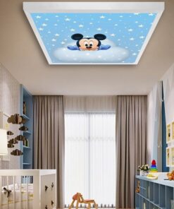 Little Mickey Çocuk odası avize modelleri, 60×60 baskılı kare avize, 54wat led tavana model