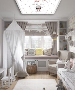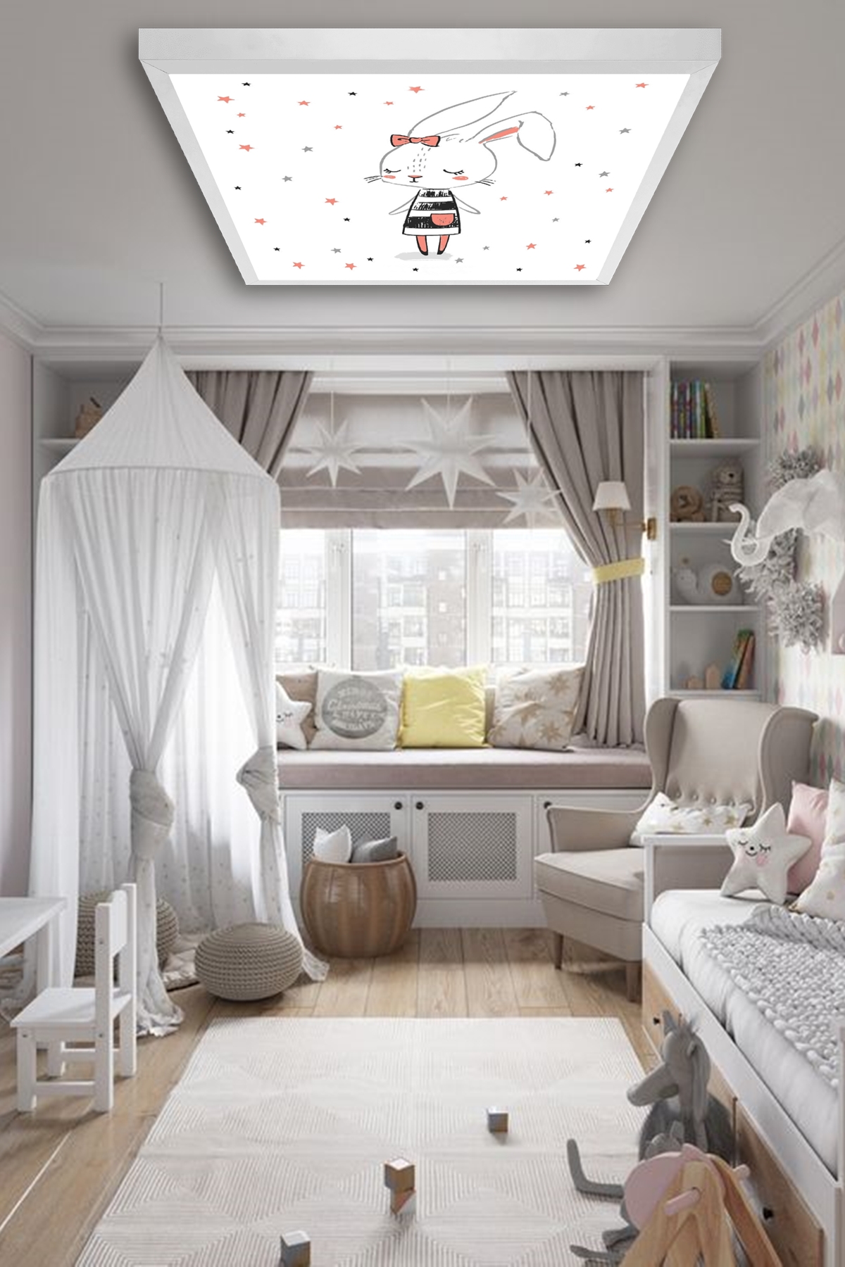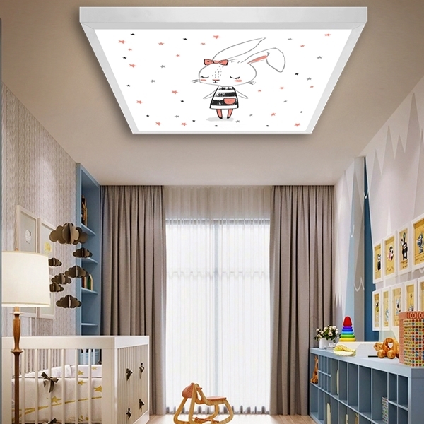 Tavşan Hanım Çocuk odası avize modelleri, 60×60 baskılı kare avize, 54wat led tavana model