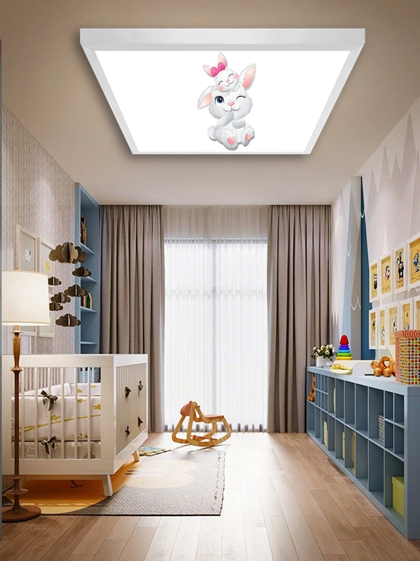 Tavşanlar Çocuk odası avize modelleri, 60×60 baskılı kare avize, 54wat led tavana model