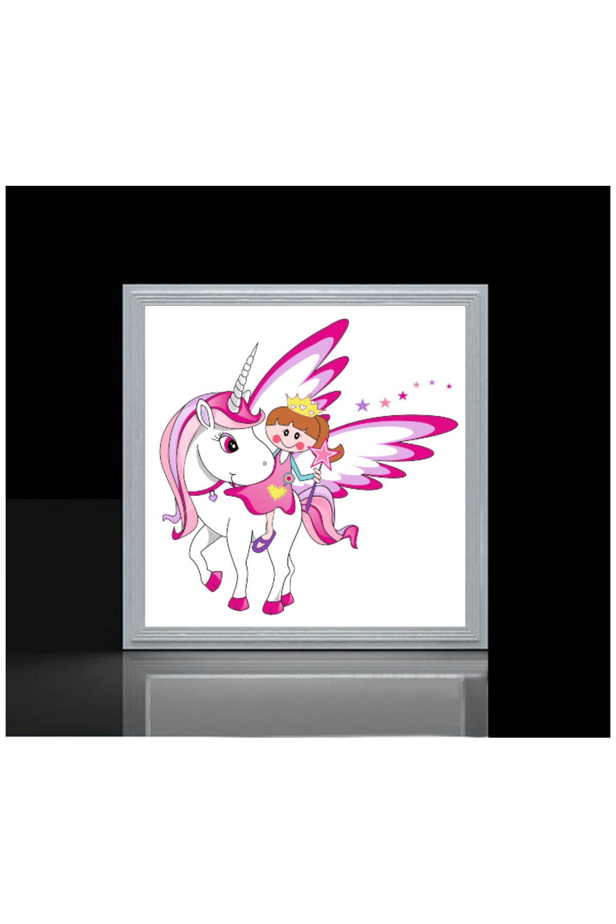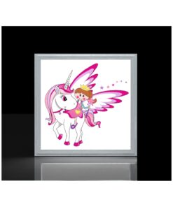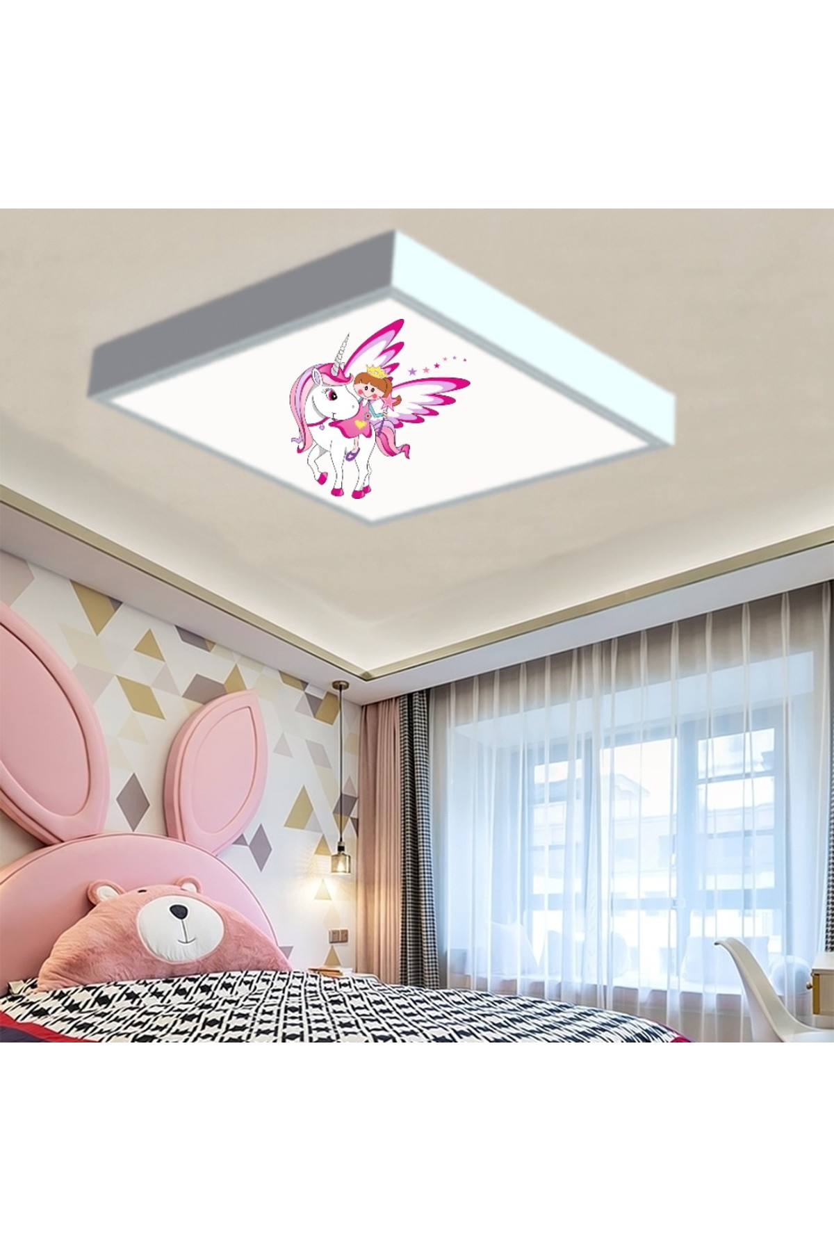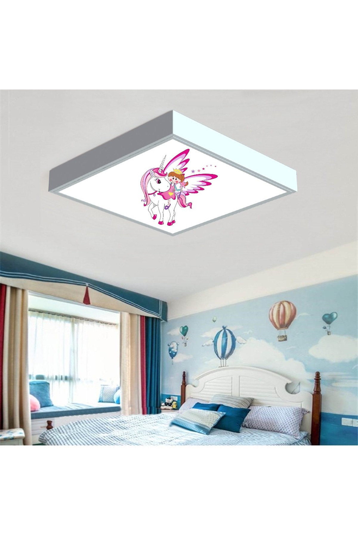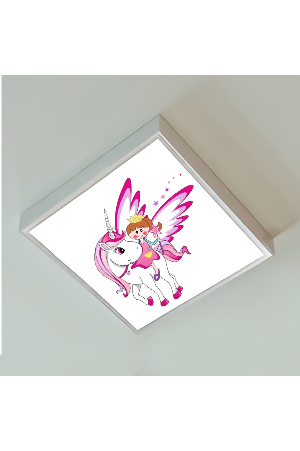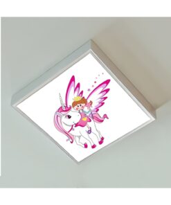 Unicorn Melek 60×60 Çocuk odası avize modelleri, baskılı çocuklar için kare avize, 54wat led, tavana model avize