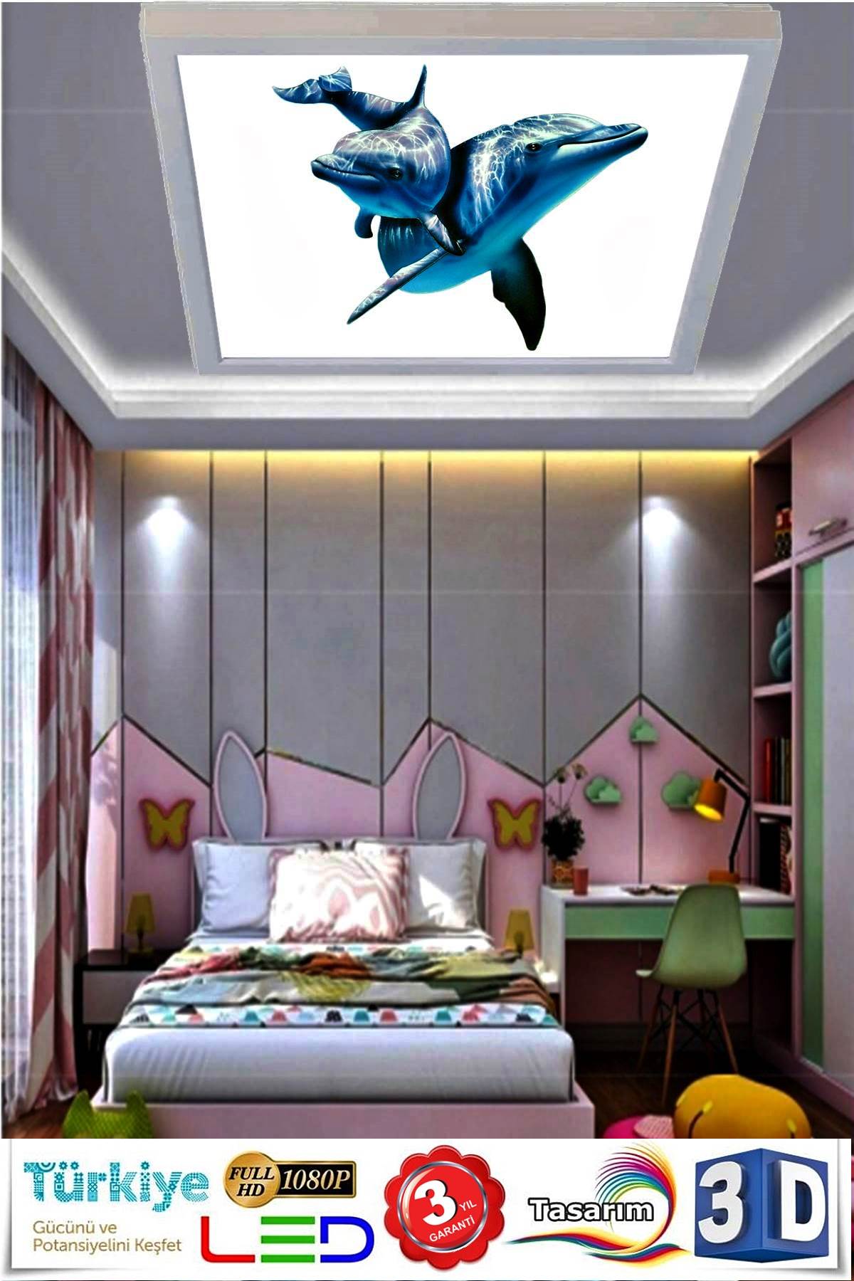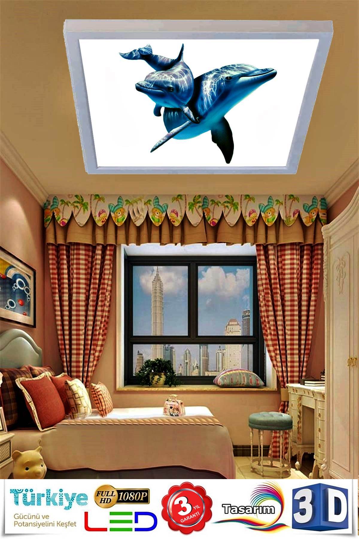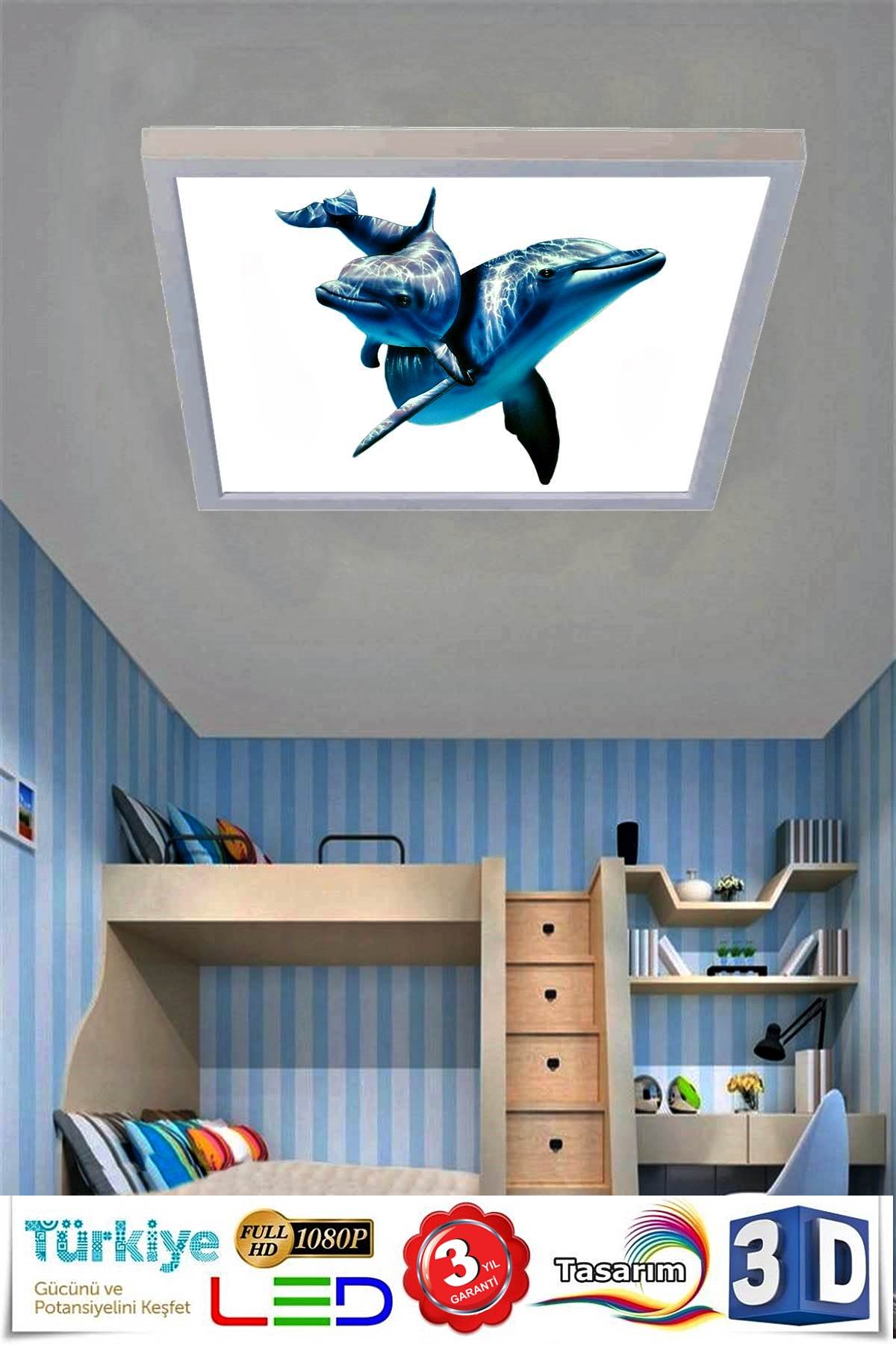 Yunus Balıkları Avize, 60×60 Çocuk odası avize modelleri, 54 wat led, tavana model avize, çocuklar için desenli avize