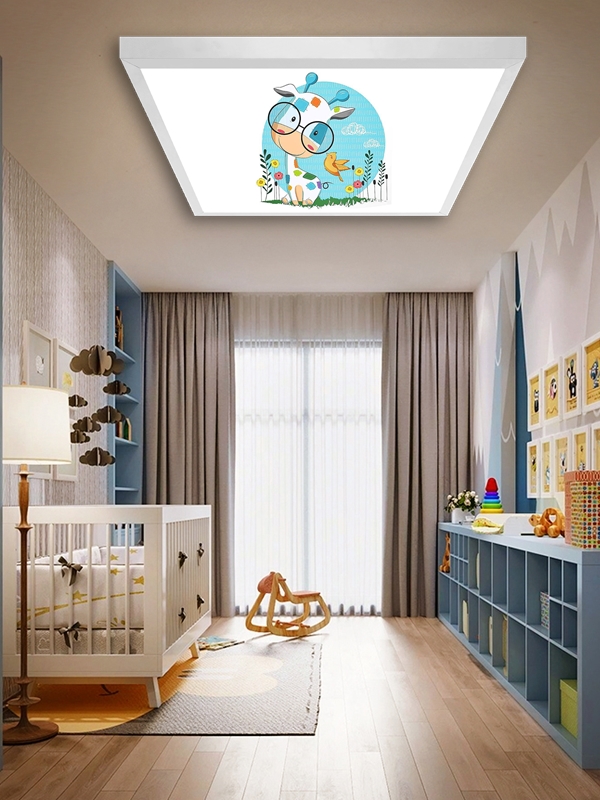 Zürafa Çocuk odası avize modelleri, 60×60 baskılı kare avize, 54wat led tavana model