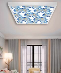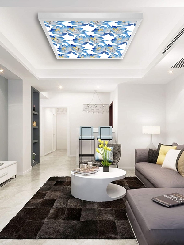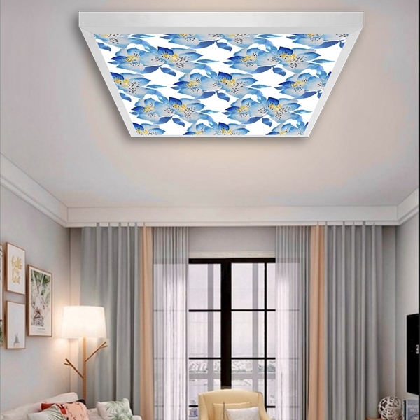 Mavi Zambak odası avize modelleri, 60×60 baskılı kare Salon avize, 54wat led tavana model