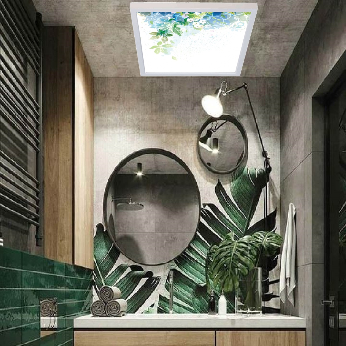 Akan Yaprak Desenli Banyo Avize, 60×60-54w, Banyo aydınlatma, yatak odası avize modelleri, wc Ferah avize
