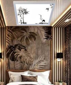 Black White Flamingo Desenli Yatak Odası Avize, 60×60-54w, ebeveyn odası aydınlatma, yatak odası avize modelleri,yatak odası Ferah avize