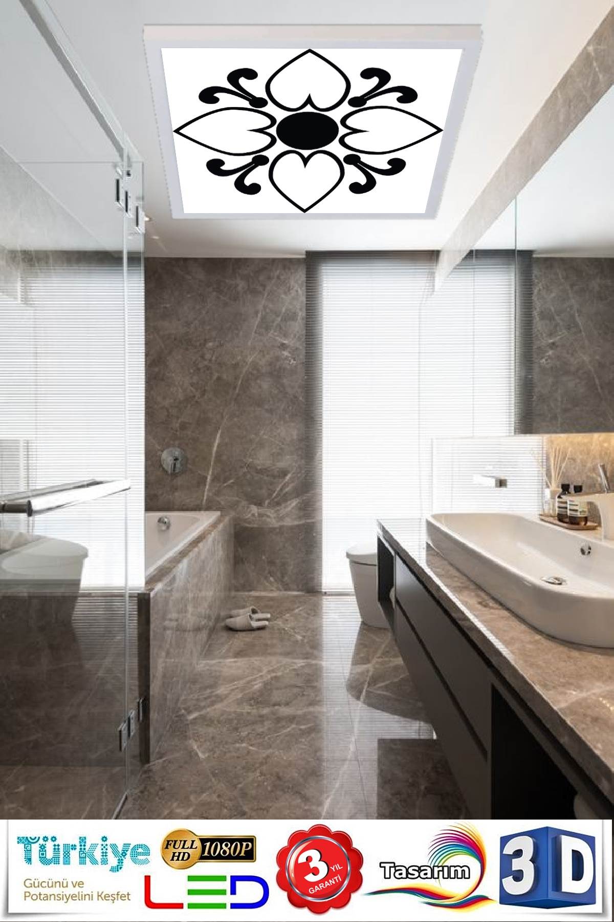 Black White Kalp Desenli Banyo Avize, 60×60-54w, Banyo aydınlatma, yatak odası avize modelleri, wc Ferah avize