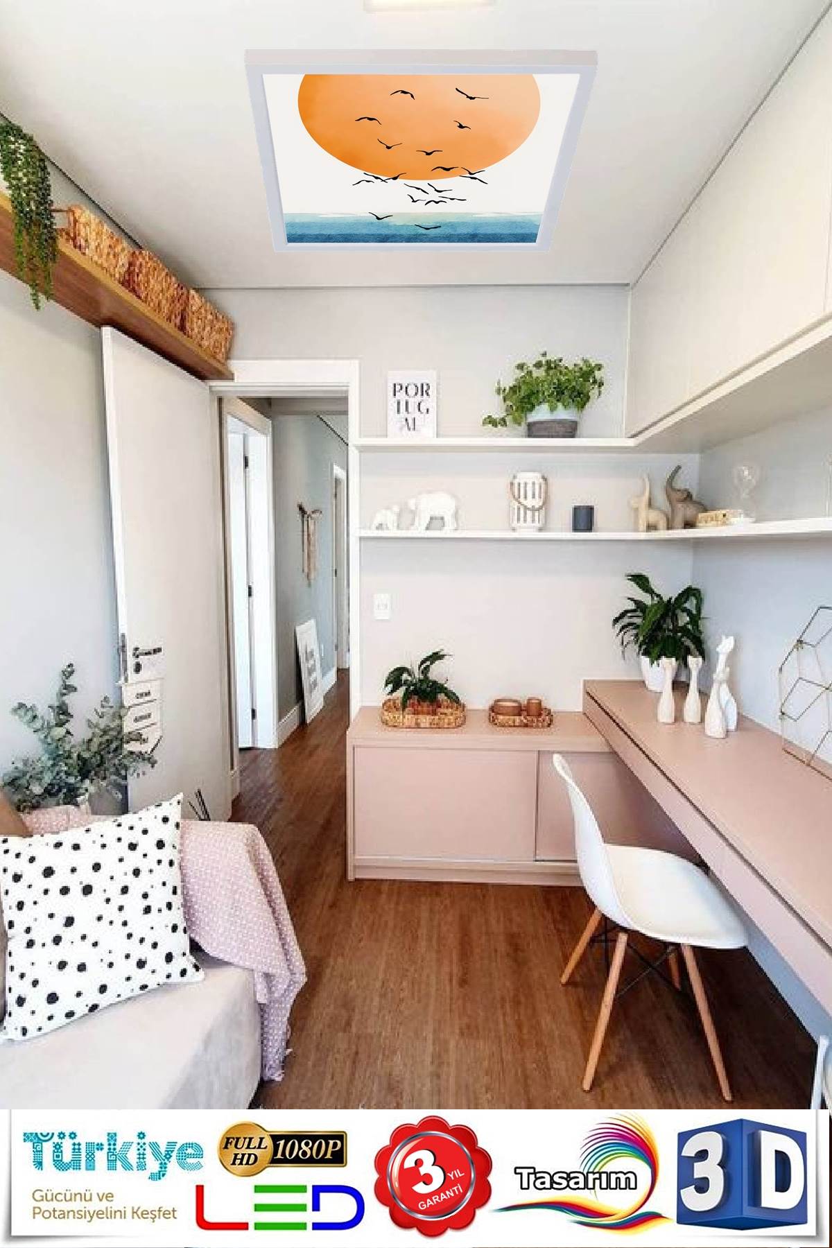 Deniz Martılar Desenli Yatak Odası Avize, 60×60-54w, ebeveyn odası aydınlatma, yatak odası avize modelleri,yatak odası Ferah avize