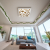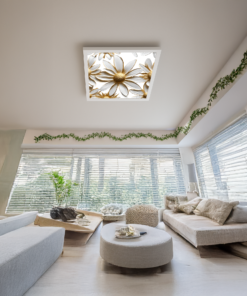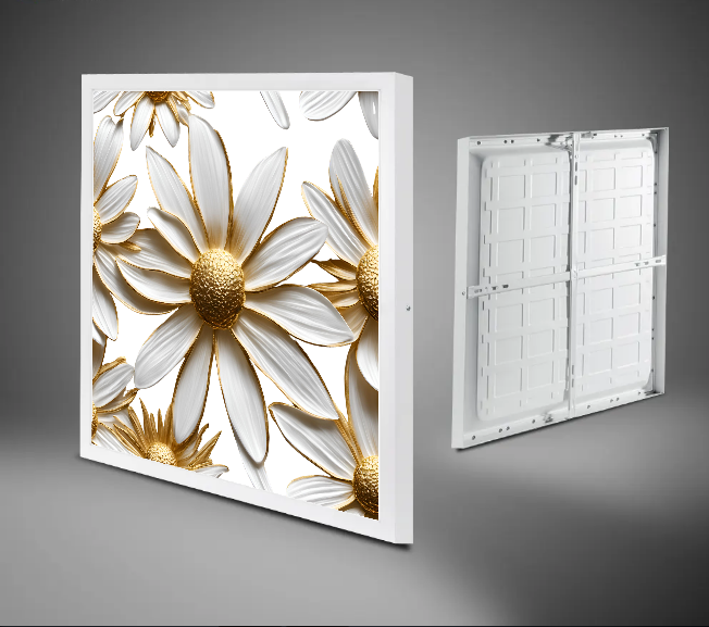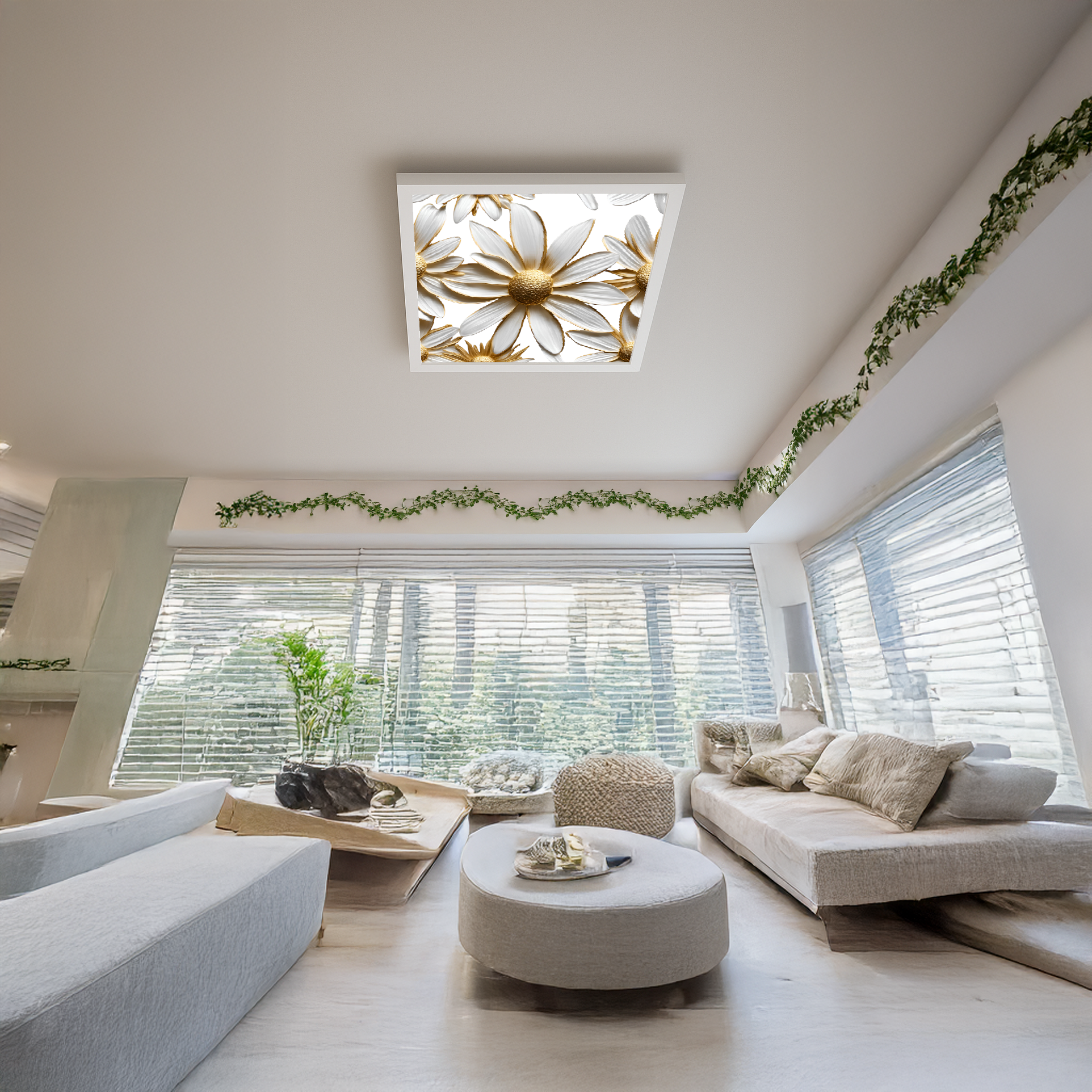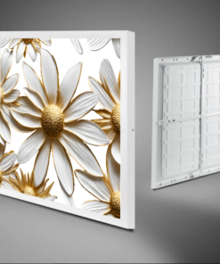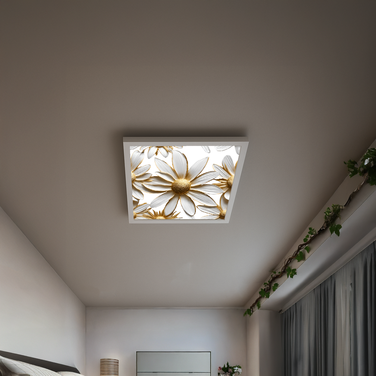 Gold Papatya 60cm x 60cm 54W Avize, Dekoratif Aydınlatma Led Panel, Baskılı Tavan Armatürü, Altın Renk Avize