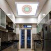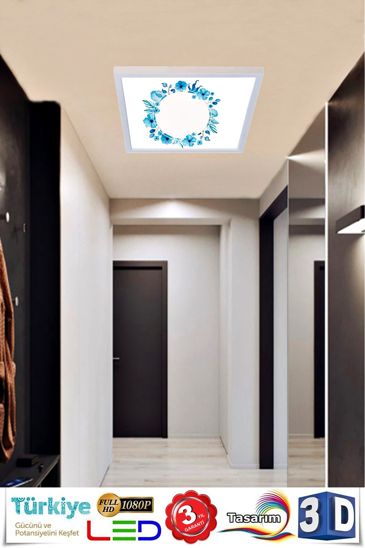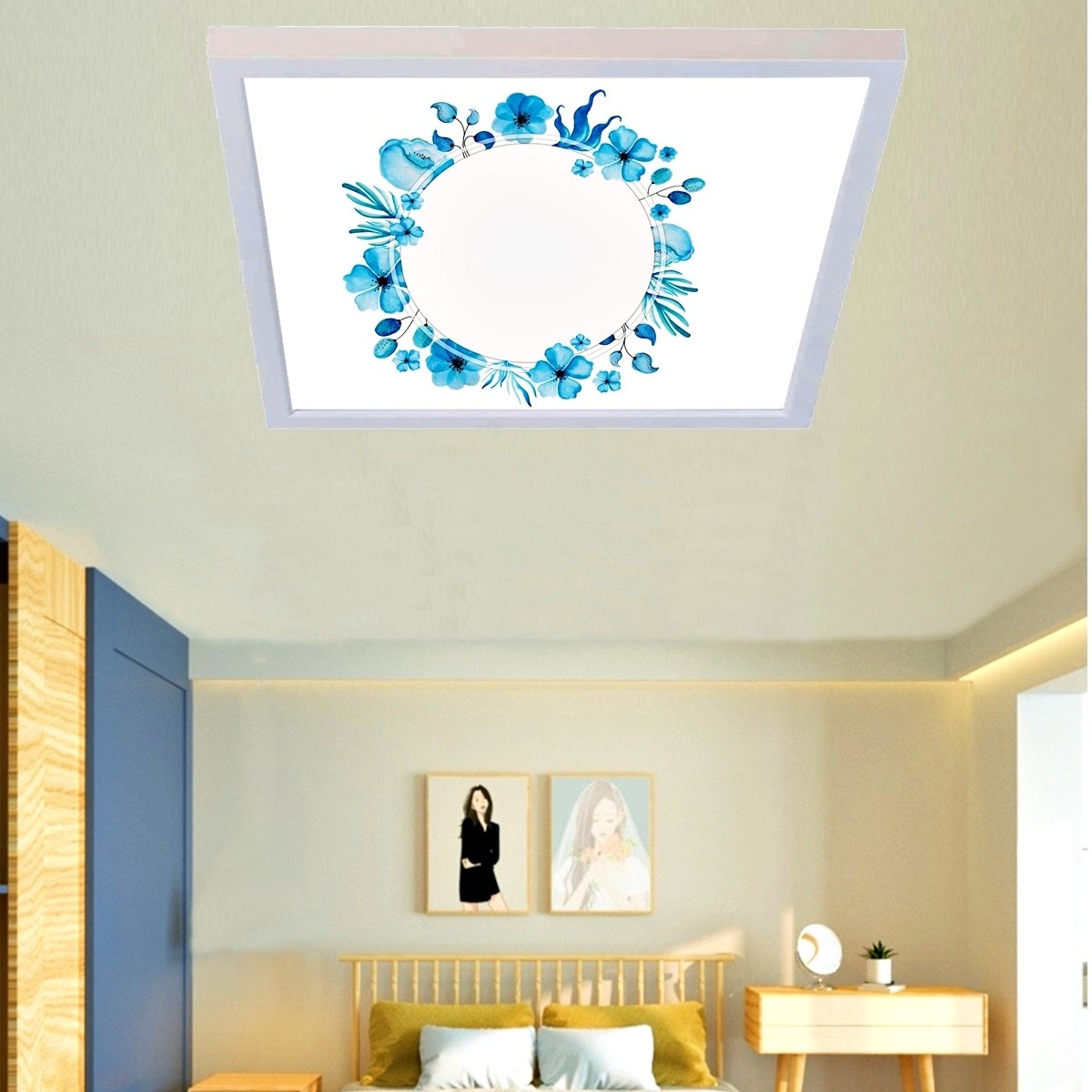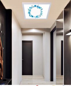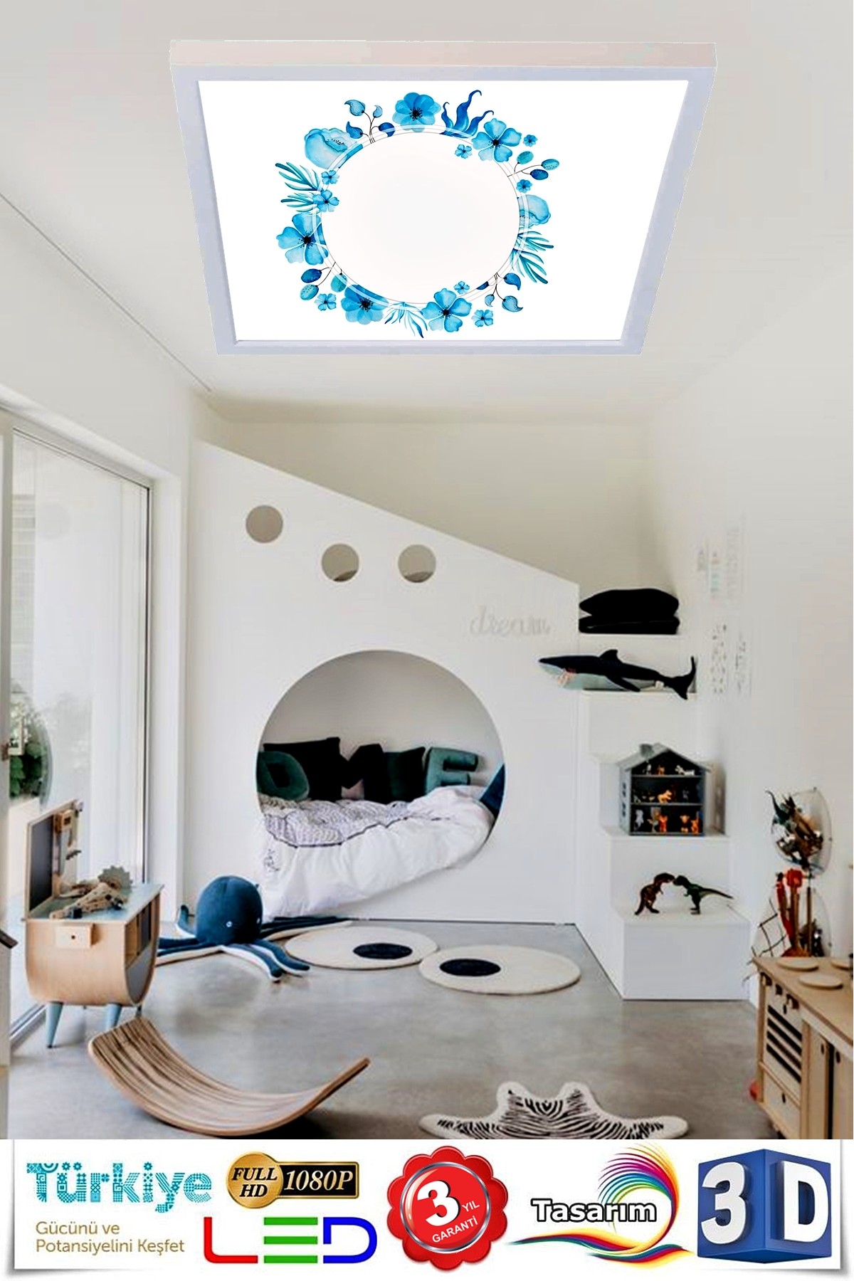 Mavi Çiçekli Çember Desenli Yatak Odası Avize, 60×60-54w, ebeveyn odası aydınlatma, yatak odası avize modelleri,yatak odası Ferah avize