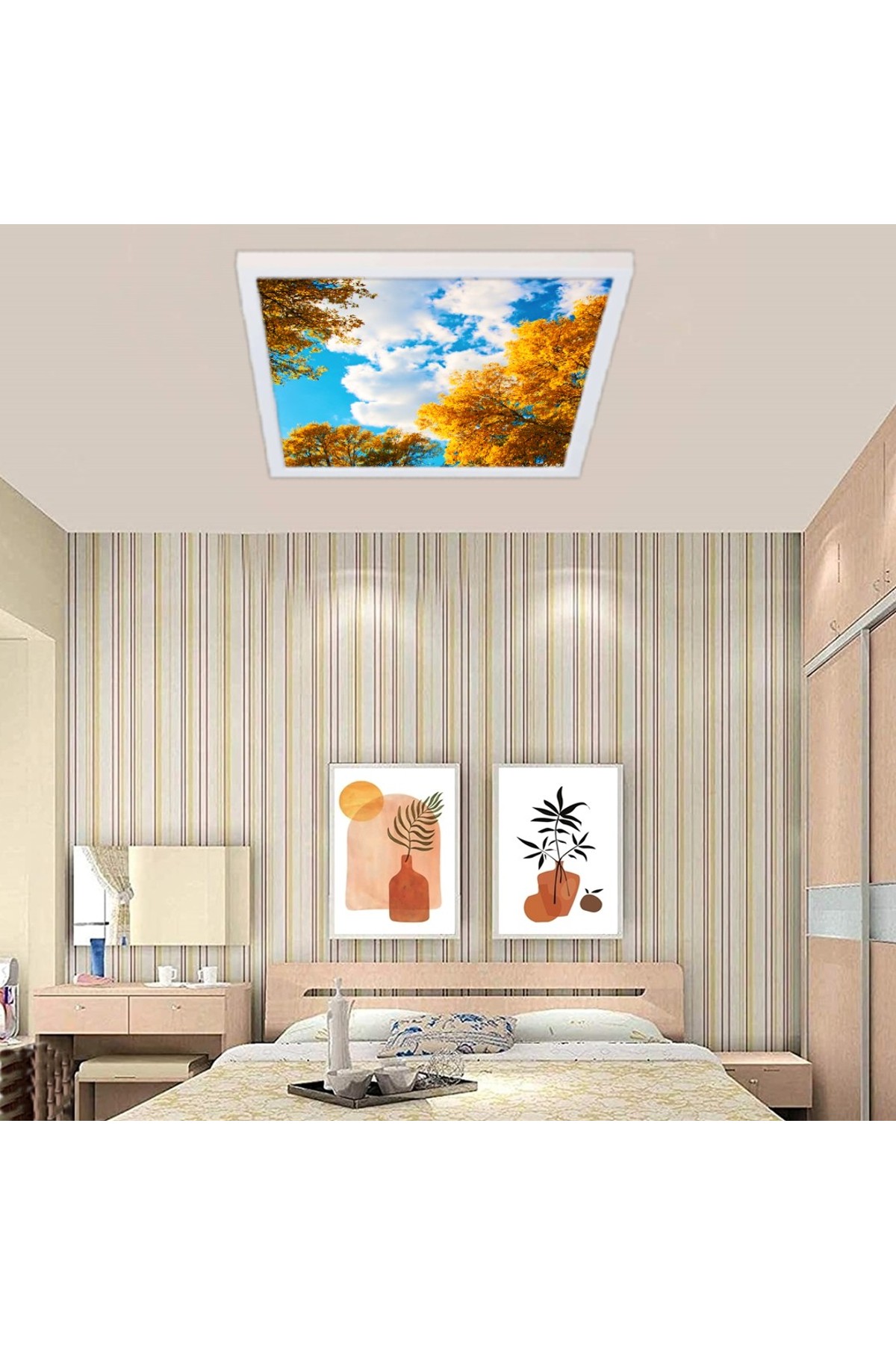 Sonbahar Gökyüzü Desenli Yatak Odası Avize, 60×60-54w, ebeveyn odası aydınlatma, yatak odası avize modelleri,yatak odası Ferah avize