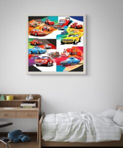 Çılgın Arabalar Serisi Led Tablo – 60×60 cm | Sıva Üstü Montajlı, Tak-Çalıştır Sistem