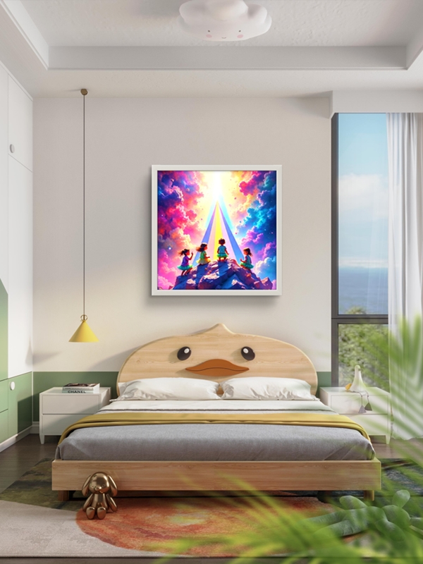 Gökkuşağı Çocukları Çocuk Odası Led Tablo – 60×60 cm | Sıva Üstü Montajlı, Tak-Çalıştır Sistem