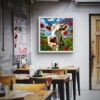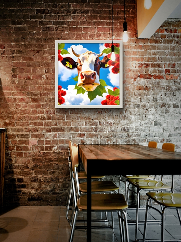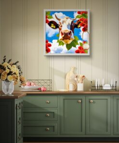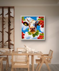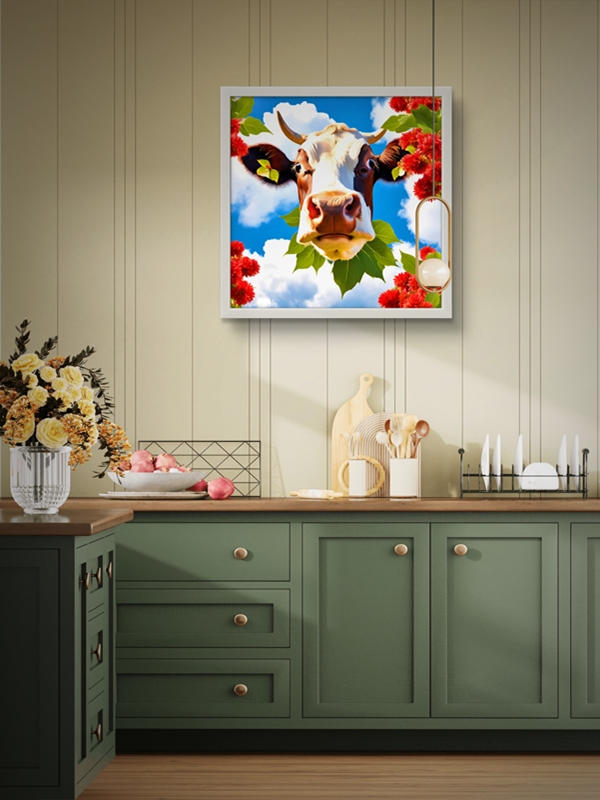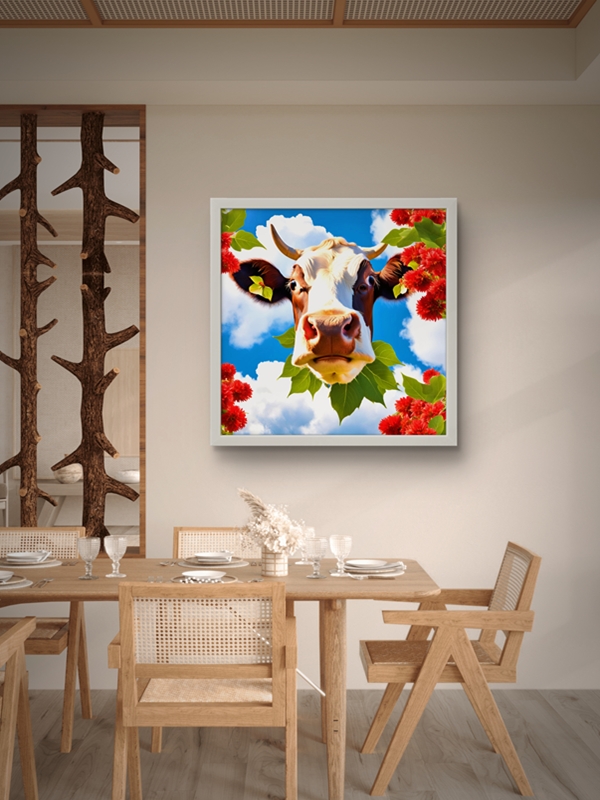 Gökyüzü ve İnek Led Tablo –Mutfak led, 60×60 cm | Sıva Üstü Montajlı, Tak-Çalıştır Sistem, Arapuarlı