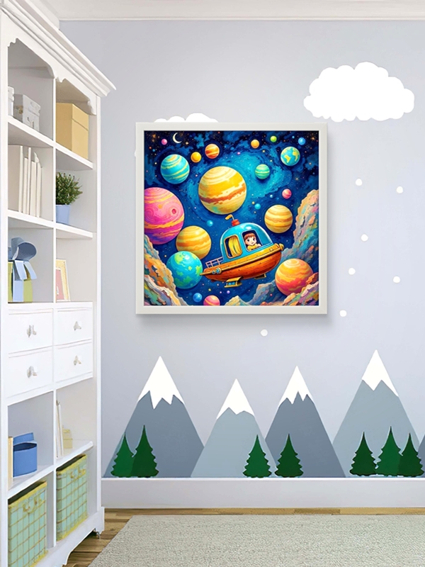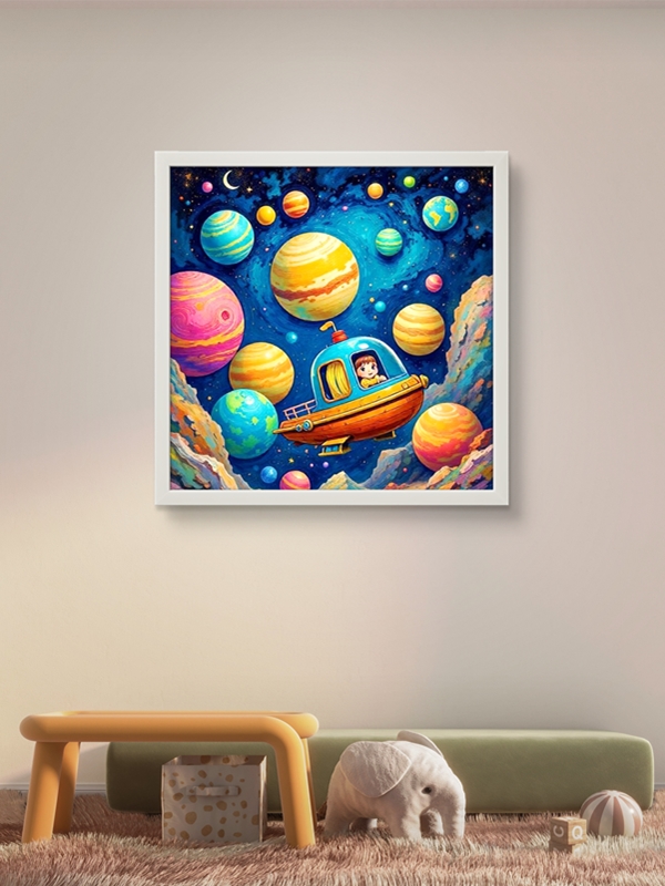 Uzay Gemisi Çocuk Odası Led Tablo – 60×60 cm | Sıva Üstü Montajlı, Tak-Çalıştır Sistem, Arapuarlı