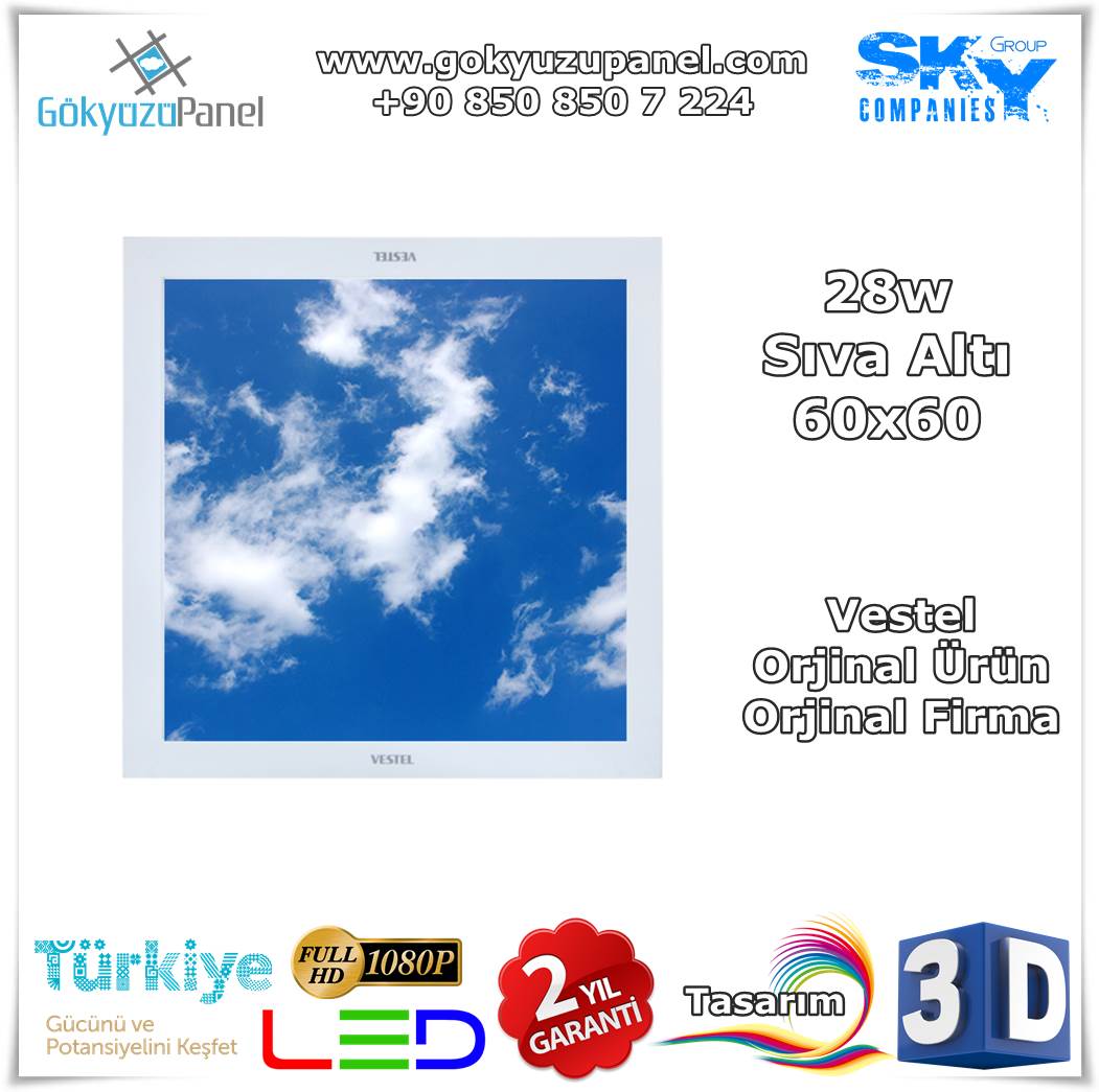 Gökyüzü Panel çok amaçlı ve avantajlı bir üründür. Vestel 60×60 Gökyüzü Panel Gökyüzü Temalı Led Aydınlatma ve dekorasyon imkanı sunar.