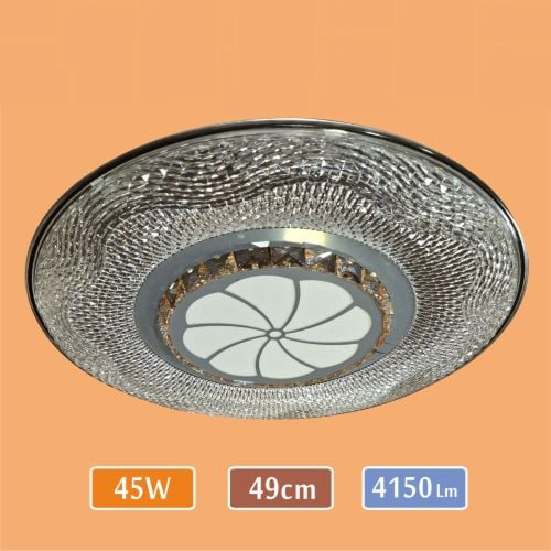 LED Tavan Armatür – Taşlı Model 2 – 6500K – Beyaz Işık – 45 Watt – 50 cm Yuvarlak Modern Avize – 4150 Lümen Güçlü Aydınlatma